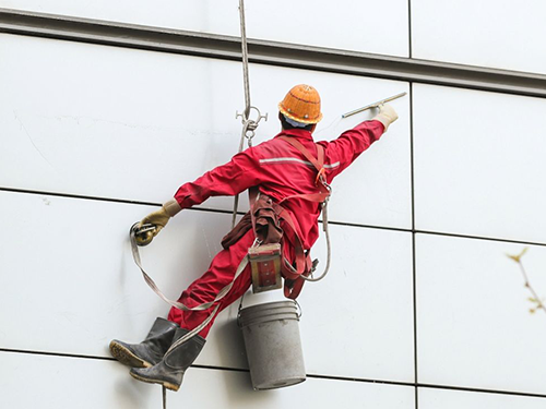 氣候條件:外墻清洗必須要在良好的氣候條件下進(jìn)行,風(fēng)力應(yīng)小于4級(jí),4級(jí)以上停止工作。因此,工作前應(yīng)測(cè)定風(fēng)力,尤其是高空風(fēng)力。另外,下雨、下雪、有霧、能見度差以及高溫(35℃以上)和低溫(0℃以下)等條件下都不適合進(jìn)行外墻清洗。